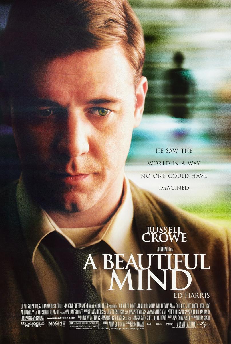 A Beautiful Mind es una película de drama biográfico estadounidense del año 2001. Basada en la novela homónima de Sylvia Nasar, que fue candidata al Premio Pulitzer en 1998, cuenta la vida de John Forbes Nash, ganador del Premio Nobel de Economía en 1994.